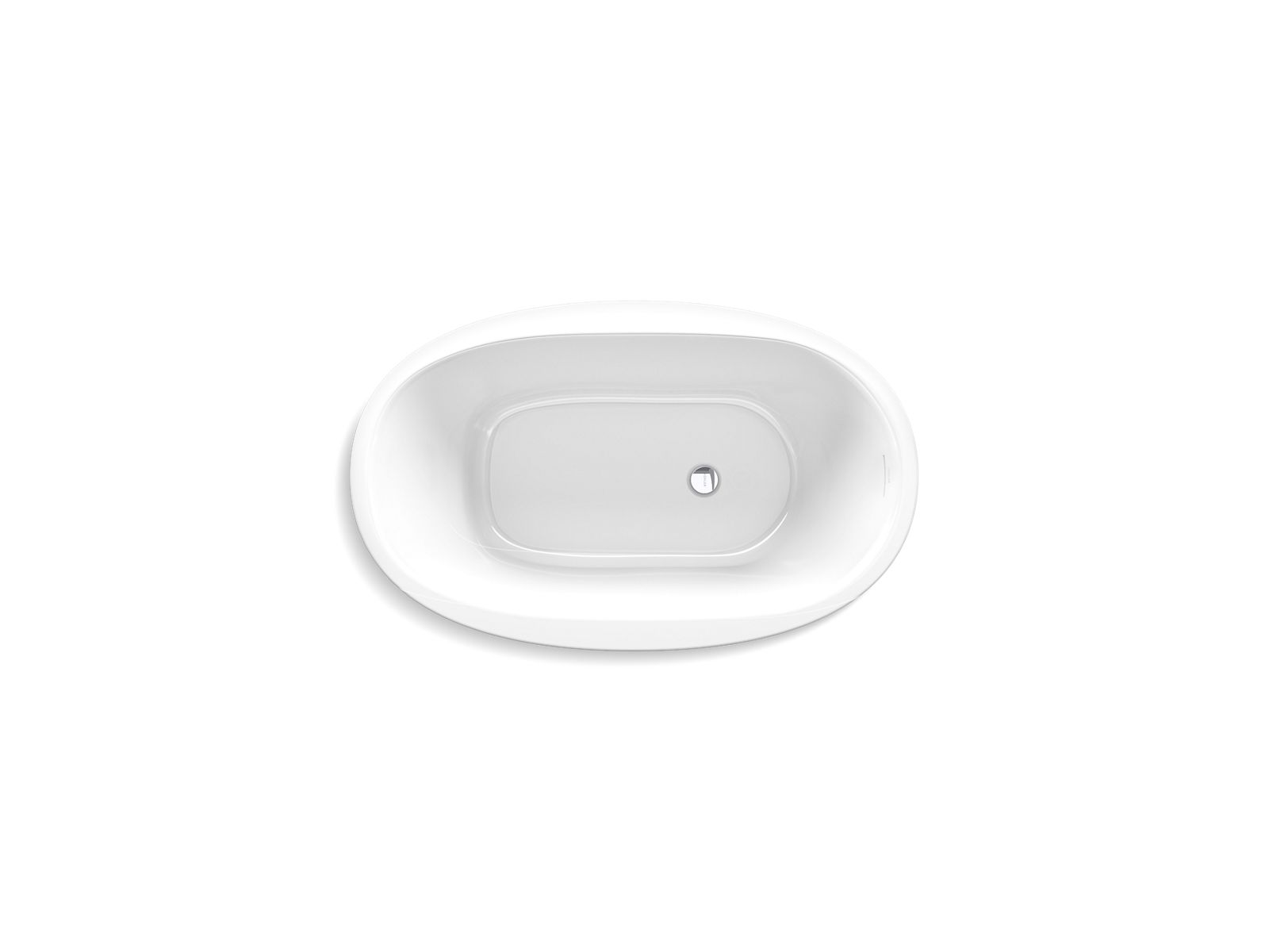 Surround yourself with tranquility and comfort in the Sunstruck™ freestanding bath. Combining luxury with practicality, the unique egg-like oval shape conforms to and supports your body as you enjoy a deep, relaxing soak. With its graceful lines and fluted shroud, this versatile bath complements a wide range of bathroom styles. Its compact design offers a sustainable reduction in water consumption and enhanced comfort for seated positions